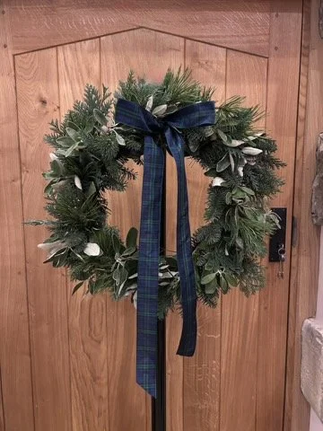 Created using a generous mixture of locally grown evergreen foliage, each wreath is individually made by hand. Our wreaths are made to be zero waste, using a willow base, string and locally grown foliage, they can be placed in the compost in the new year.